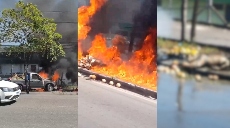 Um grave acidente de trânsito ocorrido na manhã desta terça-feira (5) terminou de forma trágica na Avenida Buriti, sentido Bola da Suframa, no Distrito Industrial, zona Leste de Manaus. Um motociclista morreu carbonizado após colidir com uma picape que transportava frutas e legumes.