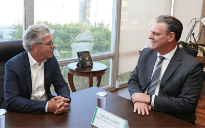 O ministro da Agricultura e Pecuária, Carlos Fávaro, recebeu nesta terça-feira (30), em Brasília, o presidente da Agência Brasileira de Promoção de Exportações e Investimentos (ApexBrasil), Jorge Viana, para discutir estratégias de expansão comercial do Brasil, com foco na região amazônica.