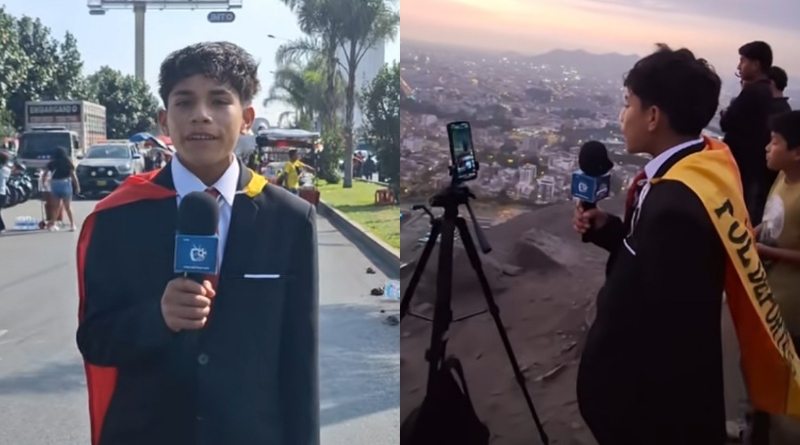 Jovem narrador peruano viraliza ao transmitir final da Libertadores do alto das montanhas de Lima